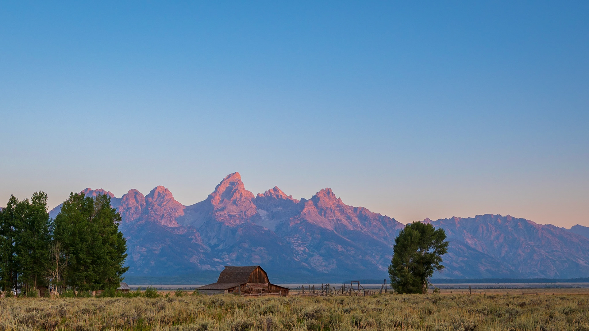 Mormon barn in the glow of sunrise